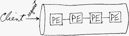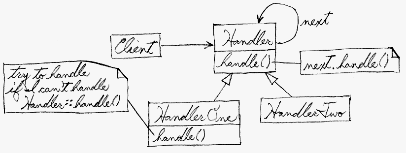 Multiple handlers could contribute to the handling of each request. The request can be passed down the entire length of the chain, with the last link being careful not to delegate to a "null next".