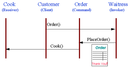 - Pass the Command object from the creator (aka sender) to the invoker (aka receiver).