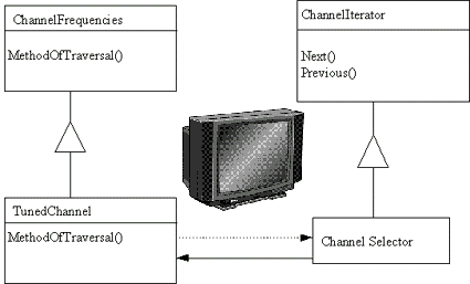 // The class SomeClassWithData provides access // to its internal data structure. Clients can // accidently or maliciously trash that data // structure. class SomeClassWithData { private TreeSet<Integer> m_data = new TreeSet<Integer>(); public void add( int in ) { m_data.add( in ); } public Collection get_data() { return m_data; } } class IteratorDemo { public static void main( String[] args ) { SomeClassWithData some_object = new SomeClassWithData(); for (int i=9; i > 0; --i) some_object.add( i ); Collection data = some_object.get_data(); for (java.util.Iterator it = data.iterator(); it.hasNext(); ) System.out.print( it.next() + " " ); System.out.println(); // Do we really want a client to be able to // trash encapsulated state? data.clear(); data = some_object.get_data(); System.out.println( "size of data is " + data.size() ); } } // 1 2 3 4 5 6 7 8 9 // size of data is 0 | // Take traversal-of-a-collection functionality out // of the collection and promote it to "full object // status". This simplifies the collection, allows // many traversals to be active simultaneously, and // decouples collection algorithms from collection // data structures. class SomeClassWithData { private TreeSet<Integer> m_data = new TreeSet<Integer>(); public class Iterator { private SomeClassWithData m_collection; private java.util.Iterator |