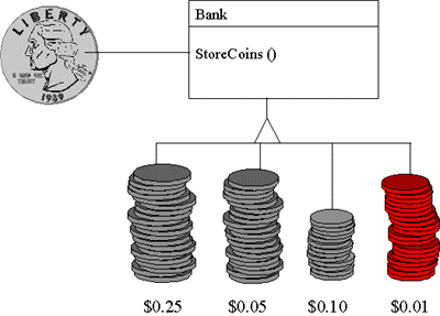 ![]() | The Chain of Responsibility pattern avoids coupling the sender of a request to the receiver by giving more than one object a chance to handle the request. Mechanical coin sorting banks use the Chain of Responsibility. Rather than having a separate slot for each coin denomination coupled with a receptacle for the denomination, a single slot is used. When the coin is dropped, the coin is routed to the appropriate receptacle by the mechanical mechanisms within the bank. [Michael Duell, "Non-software examples of software design patterns", Object Magazine, Jul 97, p54] |