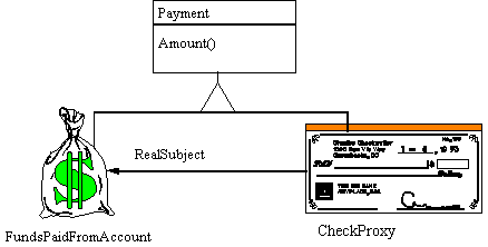 The Proxy provides a surrogate or place holder to provide access to an object. A check or bank draft is a proxy for funds in an account. A check can be used in place of cash for making purchases and ultimately controls access to cash in the issuer's account. [Michael Duell, "Non-software examples of software design patterns", Object Magazine, Jul 97, p54] |