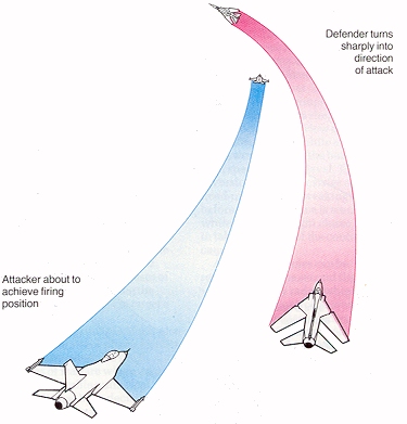 the attacker to overshoot. For 17 minutes, he defeated each rear quarter attack with a violent high-G turn, and then met the next attacker head on. |